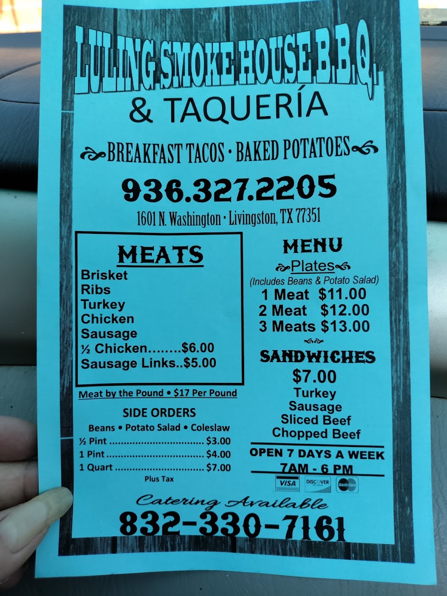 Luling Smoke House BBQ and Taqueria Menu
